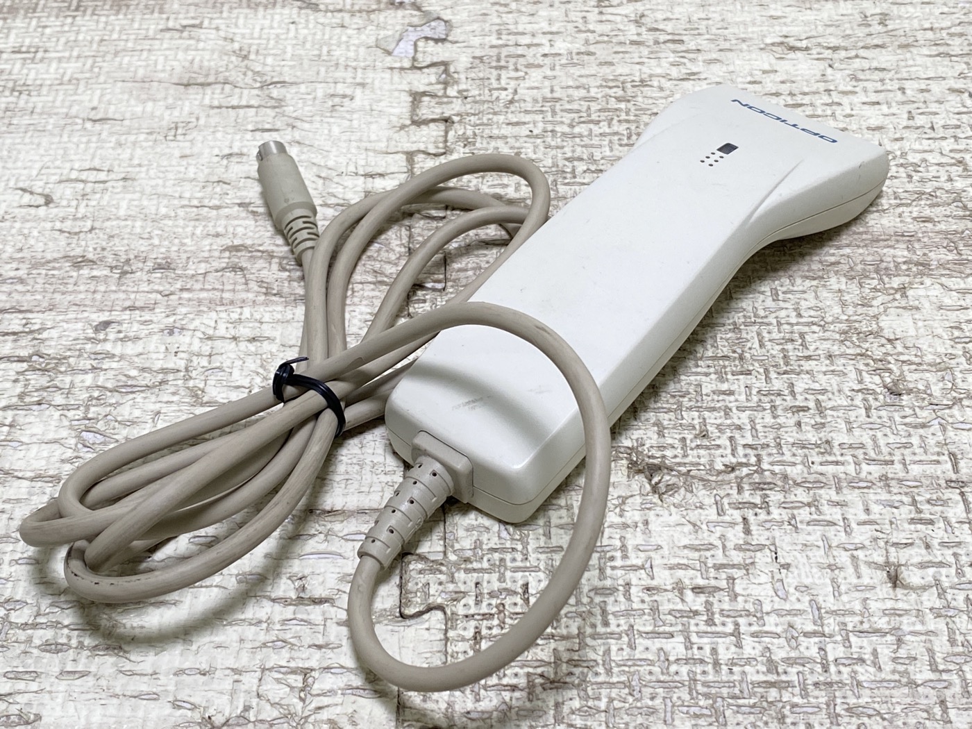 こちらのモデルはUSB接続対応のハンディレーザースキャナで、レジや物流現場など業務用に幅広く導入されています。現在は無線型など後継機が主流となりつつあり、オーソドックスで作りが良いモデルが中古市場では動やや少なくなりつつあります。